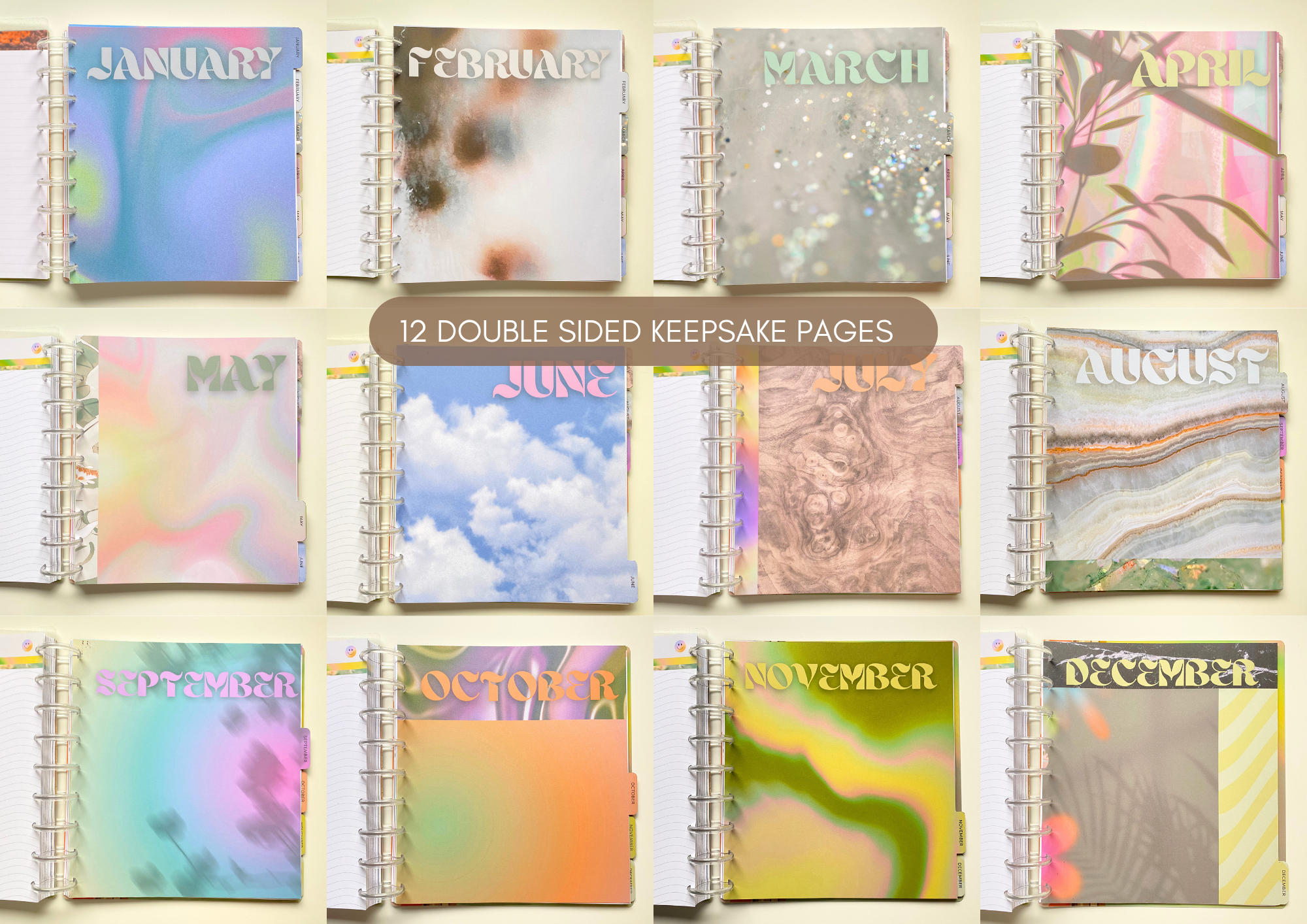 - 12 Tabbed Month Keepsake Pages