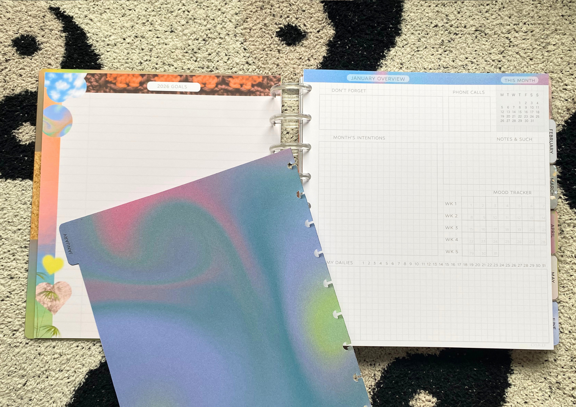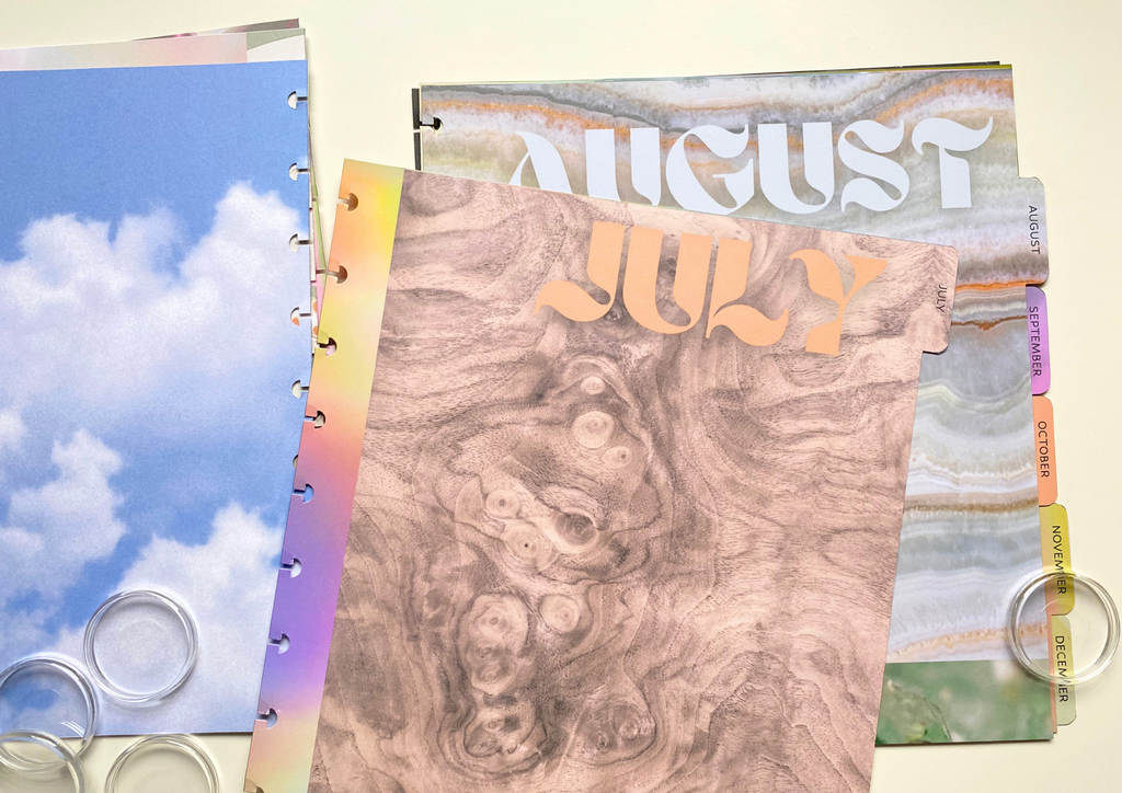 Our planners use discs for the binding. The pages are easy to take in and out! We choose this method to have everyone be able to fully customize and personalize their planner!